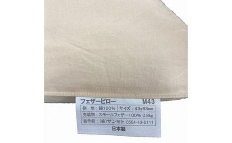 - 【ふるさと納税】 まくら フェザー ピロー 枕 スモールフェザー100% 羽根 綿100% 天然繊維 吸湿性 速乾性 充填量800g 弾力性 吸放湿性 プレゼント 贈り物 贈答 送料無料 山梨県 忍野村
