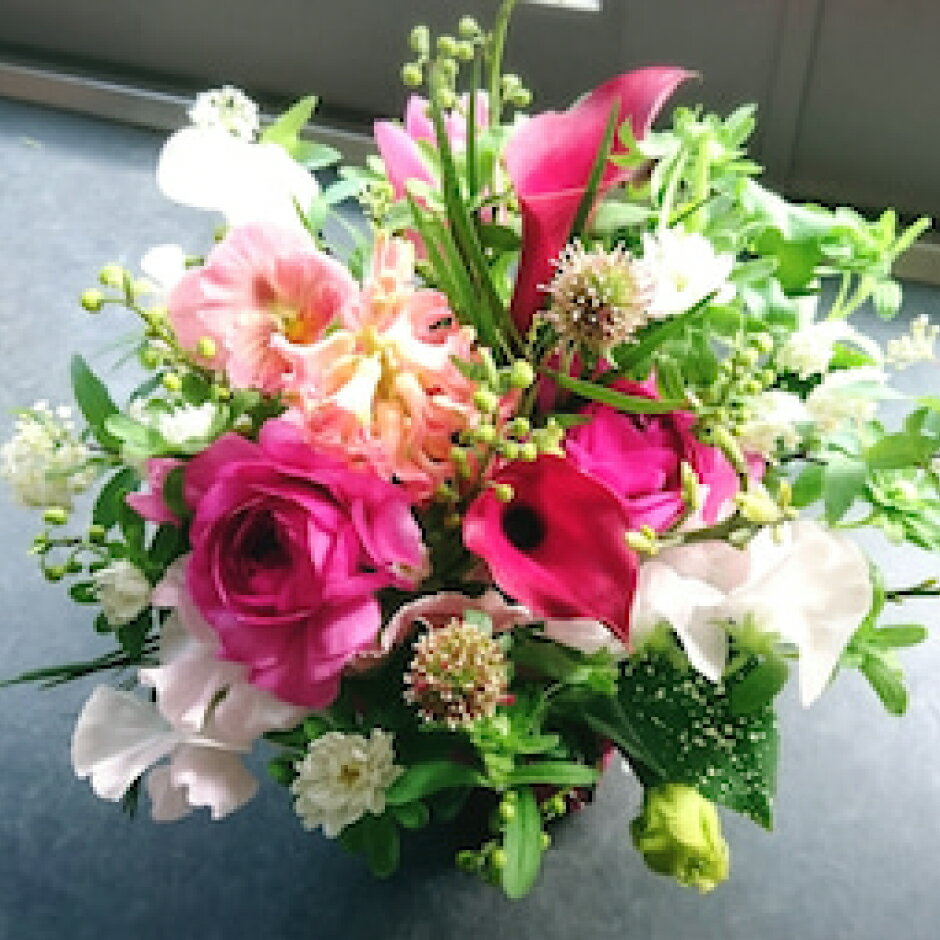 季節の花束と花瓶のセット Sサイズ【季節の花束と花瓶 Sサイズ 世界らん展 フラワードリームジャパンカップ 国内主要コンテスト受賞 贈り物 フラワーライフ 生活の彩 お部屋の彩 神奈川県 小田原市 】