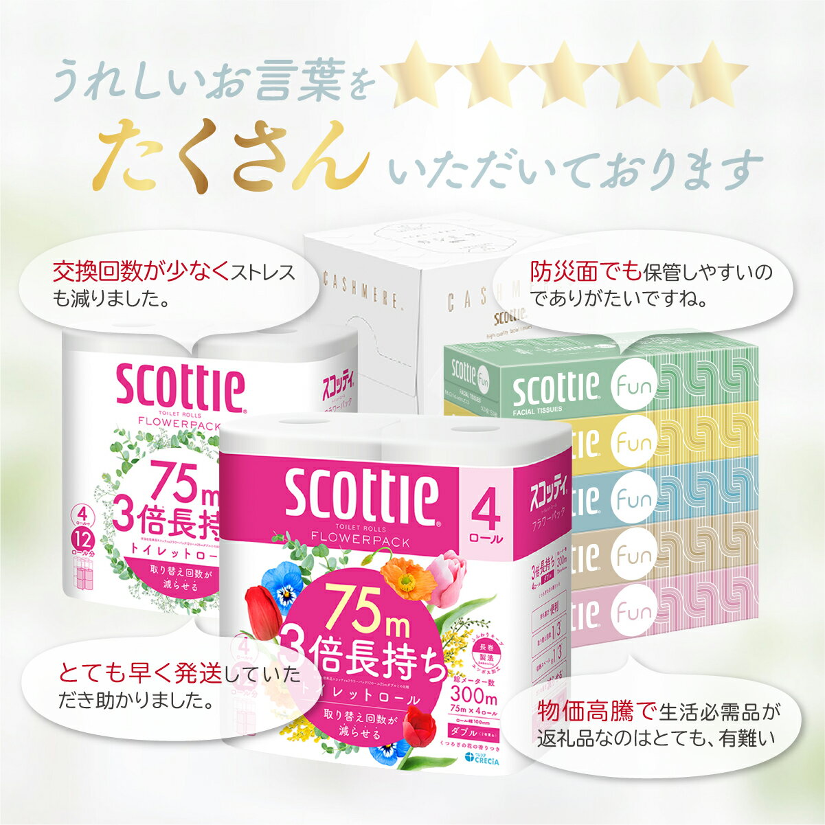 【ふるさと納税】【定期便2回】【3ヶ月に1回お届け】【スコッティ】 フラワーパック 3倍長持ち 4ロール ダブル ×12パック 合計48ロール 香りつき 日用品 生活必需品 送料無料