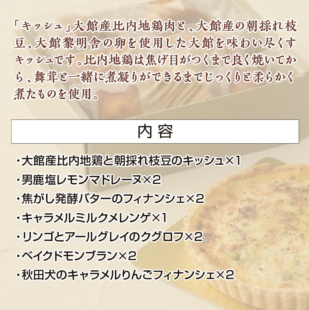 - 【ふるさと納税】比内地鶏と枝豆のキッシュ&焼き菓子セット 洋食 菓子 スイーツ デザート ギフト お歳暮 父の日 母の日 秋田県 大館市 パティスリーメッスナー 145P5601