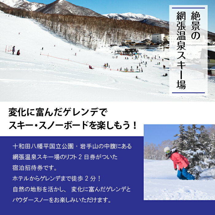- 【ふるさと納税】 リフト券付き宿泊券 1名様 2食付き おすすめ 網張温泉スキー場 温泉 スキー スノボ 露天風呂 朝食付き 夕食付き 1泊 お泊り リフト ゲレンデ ウインタースポーツ お風呂 夜景 ひとり旅 旅行 1人 宿泊 岩手県 雫石町 送料無料