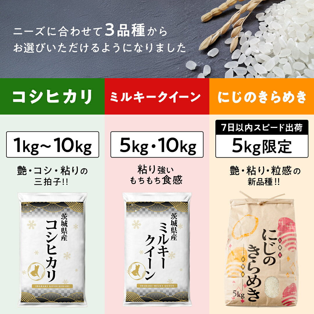 - 【ふるさと納税】 米 1kg / 2kg / 3kg / 5kg / 10kg コシヒカリ ミルキークイーン 五つ星お米マイスター監修 にじのきらめき 茨城県つくばみらい市産 | 米 コメ こしひかり 単一米 5000 11000 コスパ 高評価