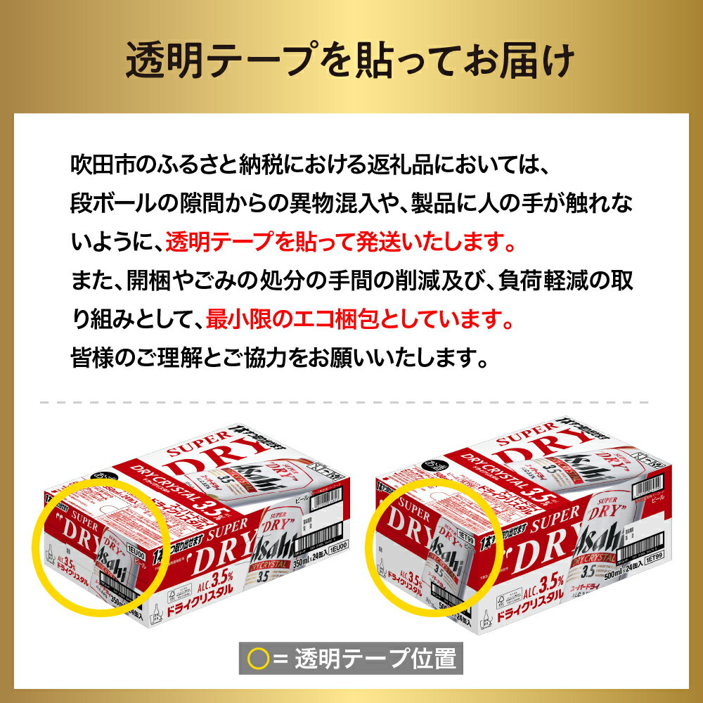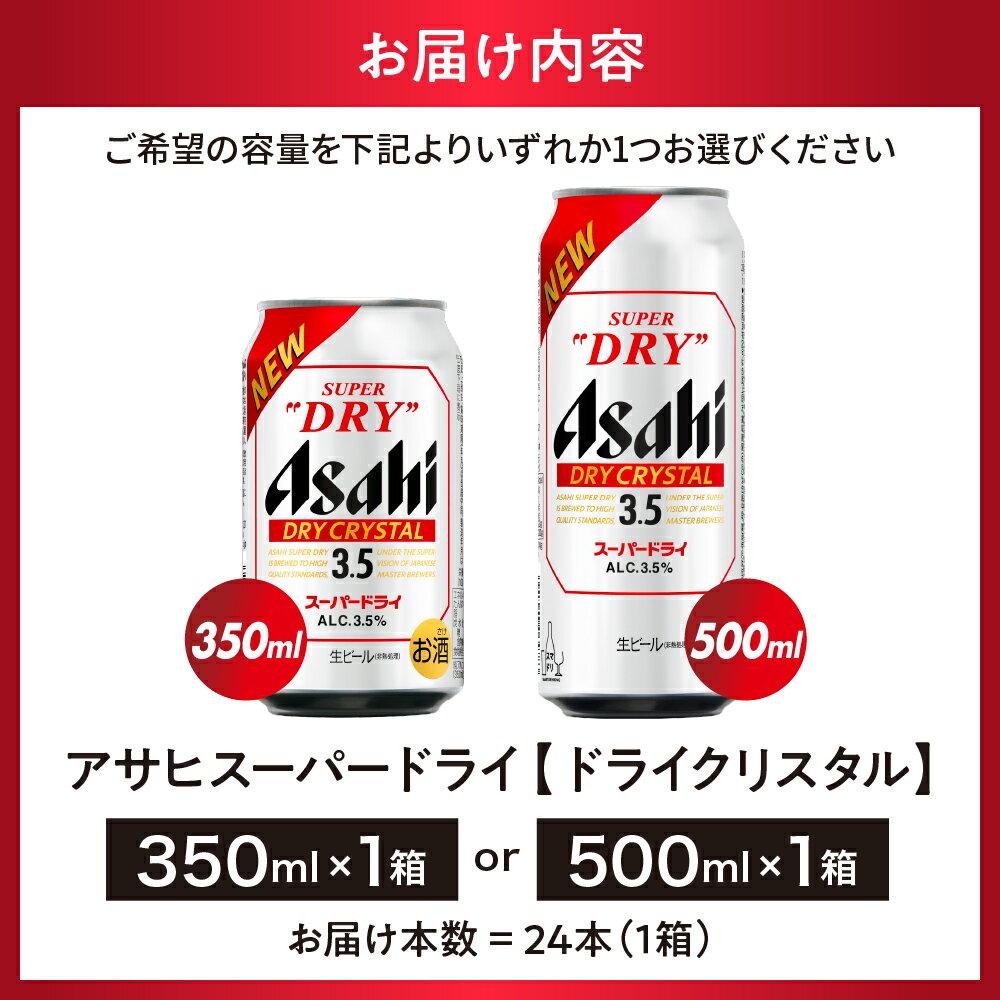 - 【ふるさと納税】 新ドライクリスタル アサヒ スーパードライ 選べる 350ml 500ml 24本 1ケース | 本数が選べる ビール 缶ビール ドライ アルコール 3.5% 箱 酒 晩酌 贈答 ギフト 誕生日 アサヒビール 発祥の地 送料無料 大阪府 吹田市