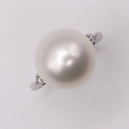 1942 Pt900 南洋白蝶真珠 11.0㎜up ダイヤモンド0.10ctリング