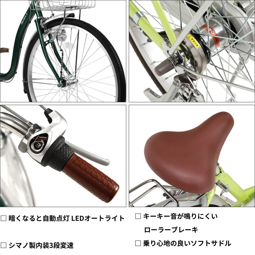 - 自転車 シティサイクル シャルロイスL2 24型 内装3段変速 オートライト ローラーブレーキ[ ライトグリーン ] 通学自転車 通勤自転車 配送エリア 関東限定 東京 埼玉 神奈川 千葉 群馬 栃木 茨城 完成品納品 一都六県限定配送