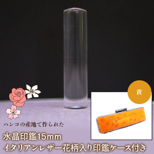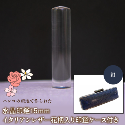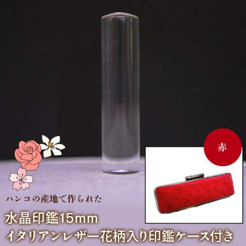 - はんこの産地で作られた水晶印鑑15mm イタリアンレザ−花柄入り印鑑ケース付き FCH006