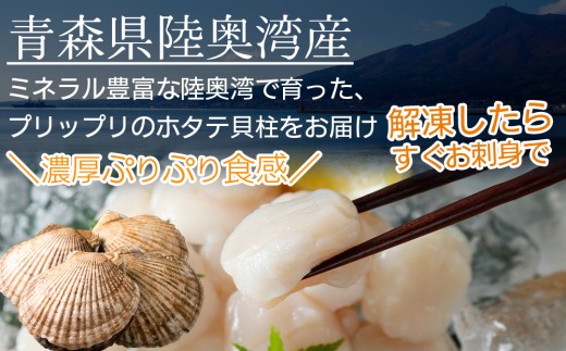 陸奥湾産ほたて貝柱 玉冷1kg(500g×2) 刺身用 サイズ不揃い 訳あり
