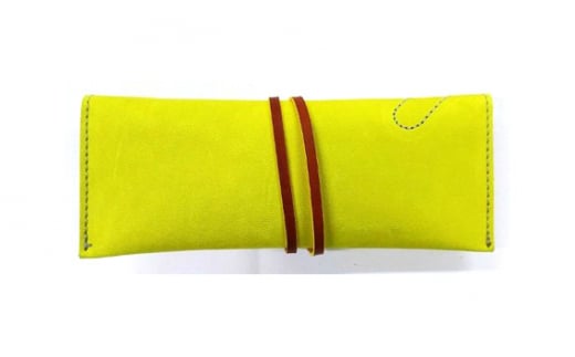 グローブの革製 マルチペンケースイエロー×グレー / 筆箱 手作り レザー 大阪府 No.259