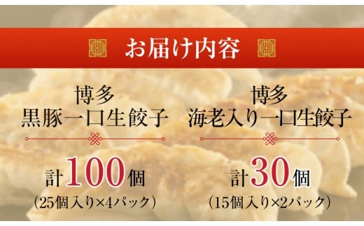 博多 一口生餃子 食べ比べセット 130個 (博多黒豚一口生餃子 博多エビ入り一口生餃子)【1月中旬以降発送】| 餃子 ギョウザ ぎょうざ 冷凍 小分け 一口餃子 生餃子 ラー麦 えび餃子 エビ餃子 海老餃子 肉 豚肉 黒豚 肉餃子 海鮮餃子 冷凍 惣菜 人気 お取り寄せ グルメ 福岡 福岡市