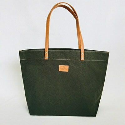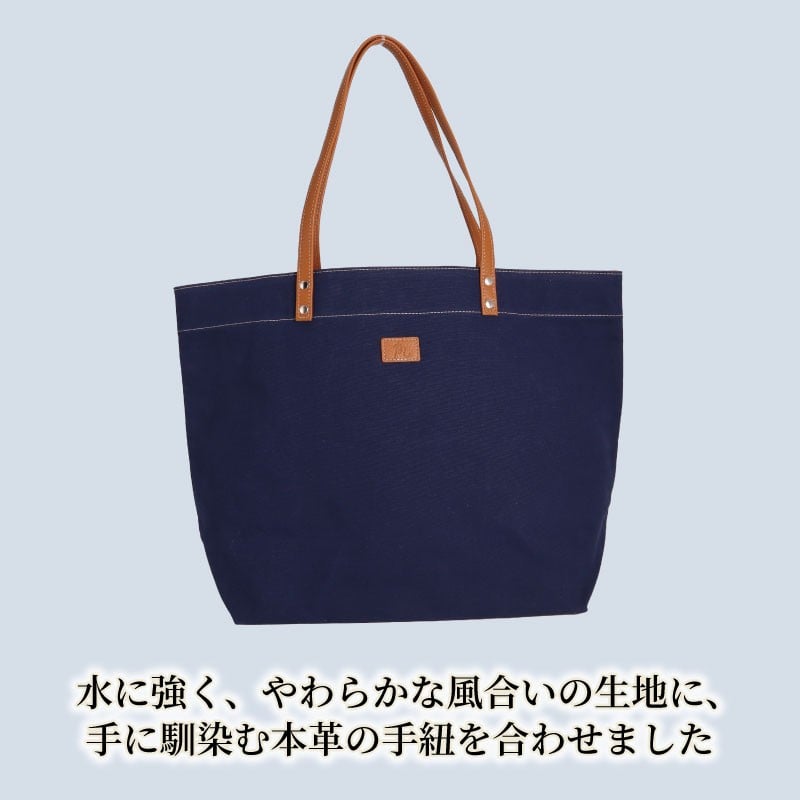 - 日本製 トート 大サイズ 選べる ネイビー カーキ ベージュ ( パラフィン帆布 ) 牛革 トートバック 手持ち カバン 鞄 本革 天然皮革製品 カラー オリジナル ブランド カジュアル シンプル 小物 雑貨 工芸品 日常使い ハンドメイド ウォッシュ加工 パラフィン 帆布 パラフィン加工 縫製 国産 自社工房 千葉県 旭市 髙野縫製 高野縫製 ぬいざえもん