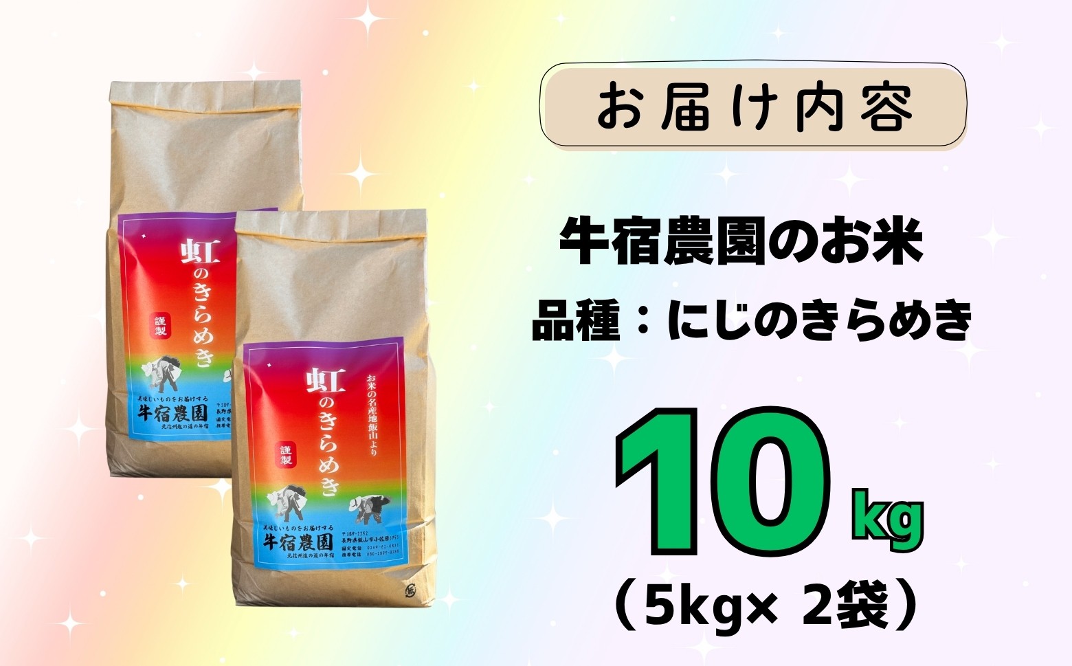 - 【令和7年産】 牛宿農園 虹のきらめき 精米 10㎏ (7-79) お米 コメ 白米 ご飯 長野県 信州 飯山市 令和7年 にじのきらめき 産地直送 農家直送