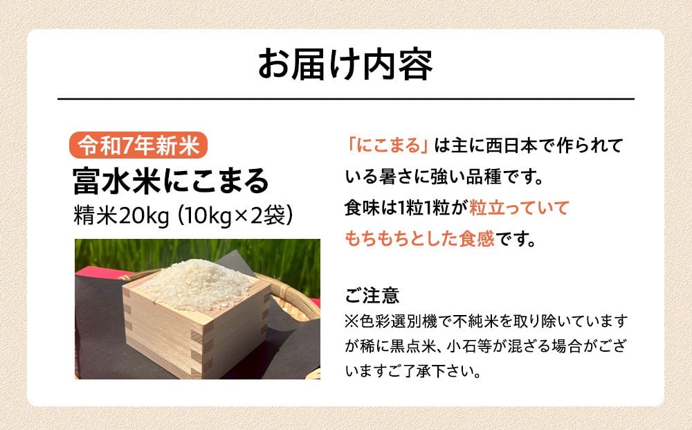 - 令和7年新米 富水米 精米 20kg にこまる