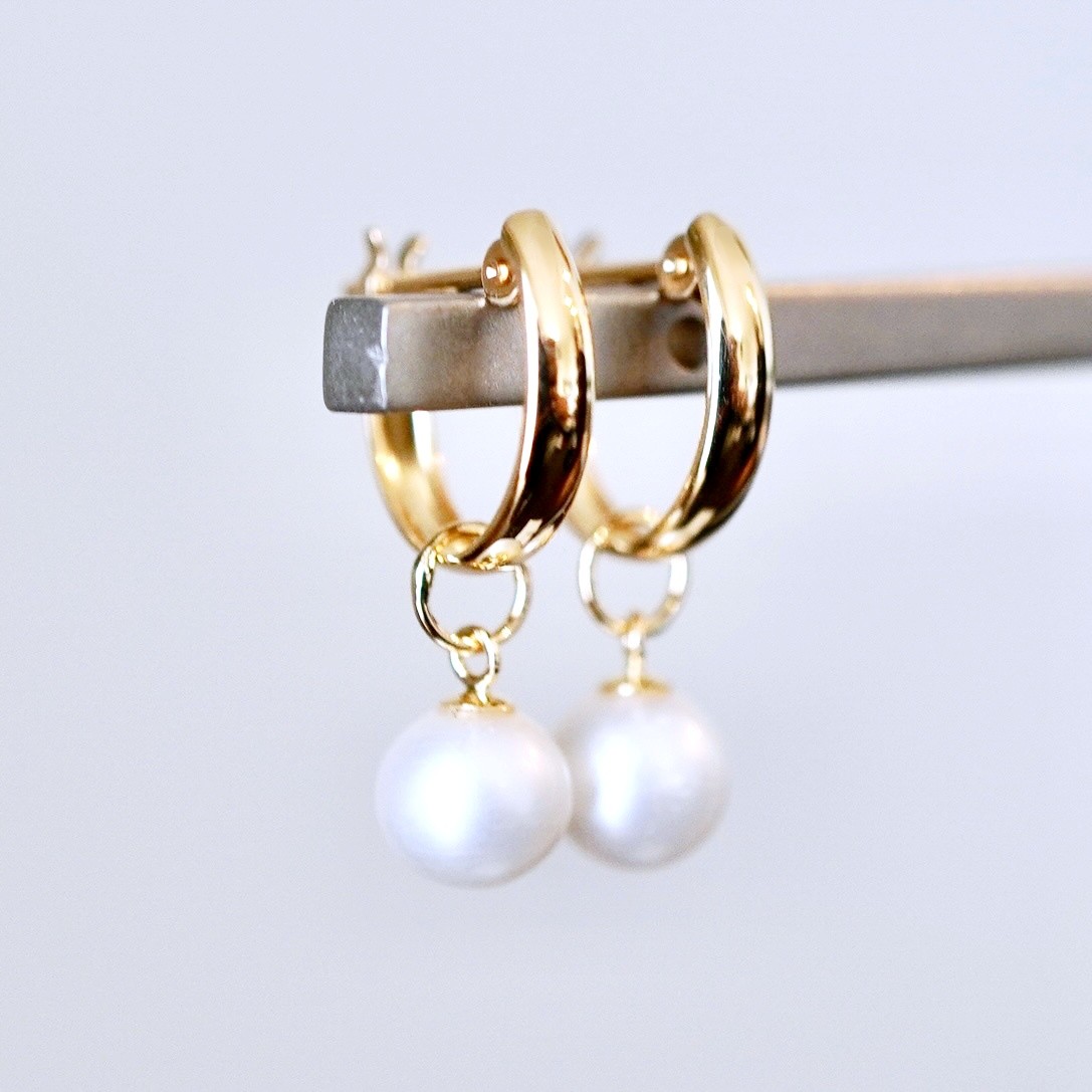 - K18 18金 イエローゴールド 2WAY ピアス 地金 真珠 パール フープピアス (直径10mm) 保証書付 SMK-5249 SWAD098-pyg