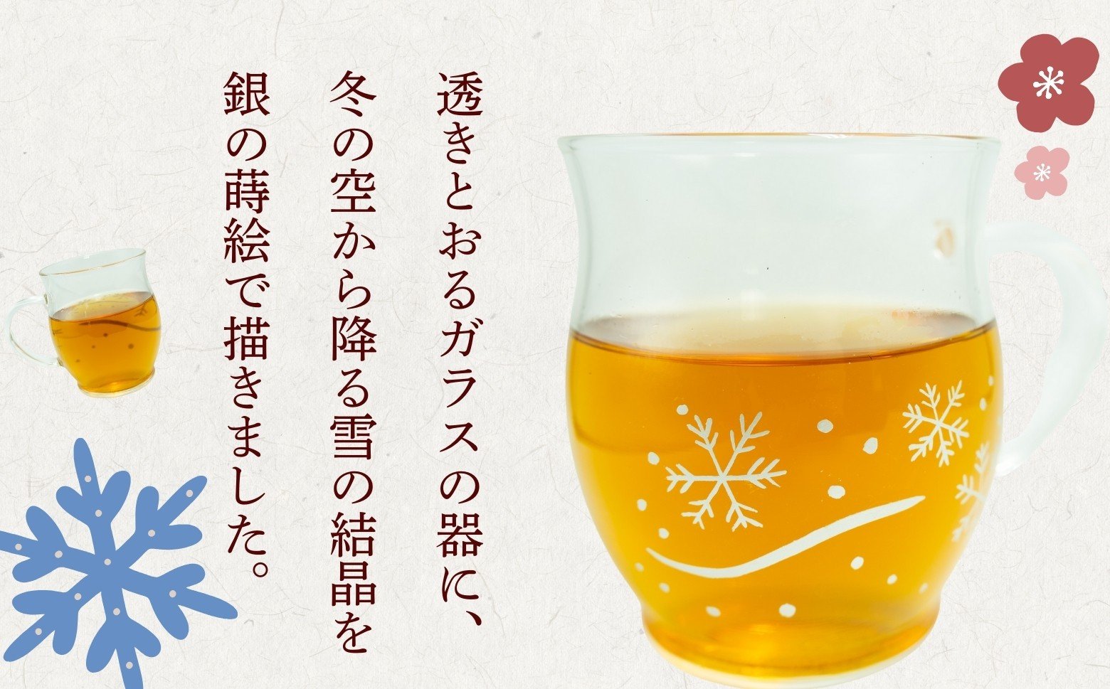 - 蒔絵で描いた 雪華 ガラス マグカップ 330ml (耐熱ガラス) (Ba-036) |ギフト マグ マグカップ コップ カップ スープマグ ガラス グラス 伝統工芸 蒔絵 おしゃれ かわいい