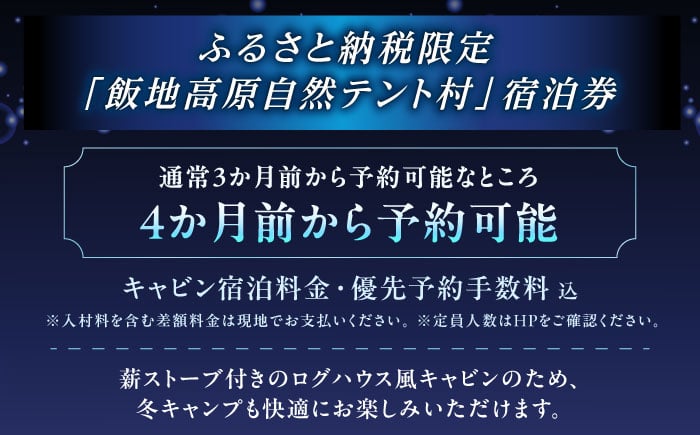 - 飯地高原自然テント村 薪ストーブ付キャビン ハイシーズン4カ月前優先予約宿泊券 / キャンプ チケット 宿泊券 テント グランピング バーベキュー BBQ アウトドア 体験 キャンプ場 カップル 家族 友達 自然 週末リゾート 予約 旅行 夏休み 秋旅 景色 キャンプサイト キャビン ハイシーズン 優先宿泊券 岐阜県 / 恵那市 / 飯地高原自然テント村 [AUAG003]