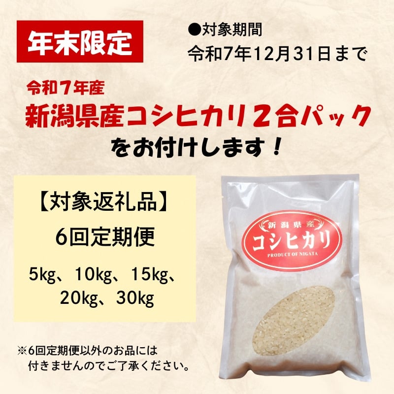 令和7年産 食味鑑定士厳選 新潟県産こしひかり 無洗米 5kg 6か月定期便 上越市 米 コメ コシヒカリ