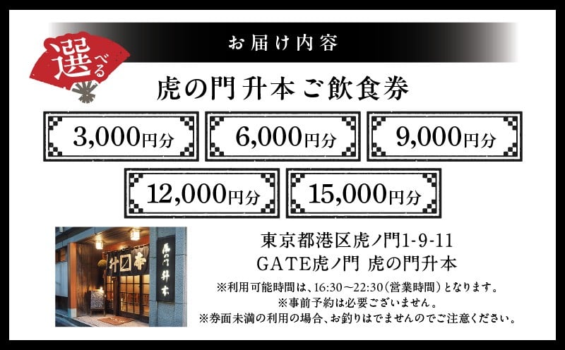 虎の門升本ご飲食券3,000円~15,000円分