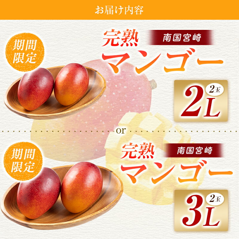 【ふるさと納税】【2026年発送 先行予約】完熟マンゴー 2Lまたは3L×2玉(フルーツ マンゴー 完熟マンゴー アップルマンゴー 果物 くだもの 先行受付 2026 令和8年 宮崎)