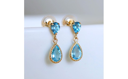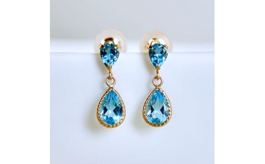 K10YG(10金) イエローゴールド 揺れる ブルートパーズ アンティーク ピアス 保証書付 SR-2261 242-050-d
