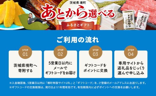 - あとから選べる 【 カタログギフト 】寄附 10,000円 (3,000円分ポイント) 800品以上 有効期限 3年 後から選べる オンラインカタログ 高評価 茨城県 境町 訳あり 米 うなぎ 鰻 肉 お米 干し芋 干しいも 餃子 牛肉 ハンバーグ 野菜 定期便 あとからチョイス あとからギフト カタログ ギフト券 あとからセレクト ふるさとギフト ギフトポイント