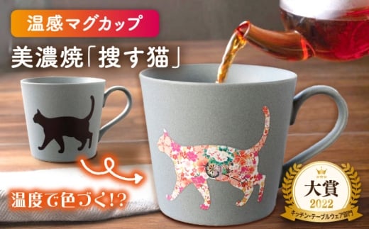 【温度で変化する】【美濃焼】 温感 ネコ マグカップ 1個 『捜す猫』マグカップ 保温 焼き物 コーヒーカップ マグ カップ コップ 美濃焼 ペア セット おしゃれ 食器 陶器 ギフト 贈り物 ねこ ネコ 猫 猫グッズ 動物 多治見市 / 丸モ高木陶器[TBA020]