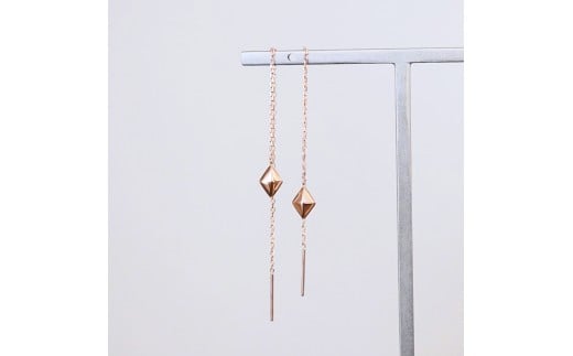 K18PG(18金) ローズゴールド 地金 菱形 チェーン ピアス シンプル 保証書付 KO-0071 242-035-c