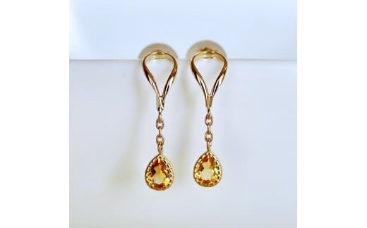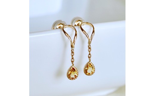 - K10YG(10金) イエローゴールド 揺れる シトリン アンティーク ピアス 保証書付 2274 242-049-b