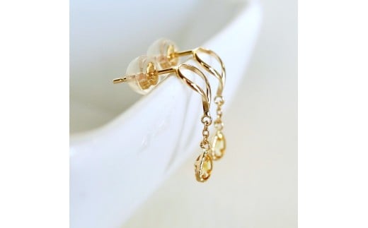 K10YG(10金) イエローゴールド 揺れる シトリン アンティーク ピアス 保証書付 2274 242-049-b