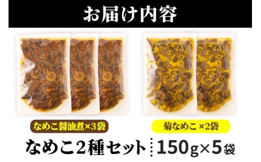 なめこ2種セット(なめこ醤油煮3袋・菊なめこ2袋)150g×5袋 <ゆうパケット> 無添加 秋田県産 惣菜