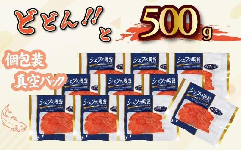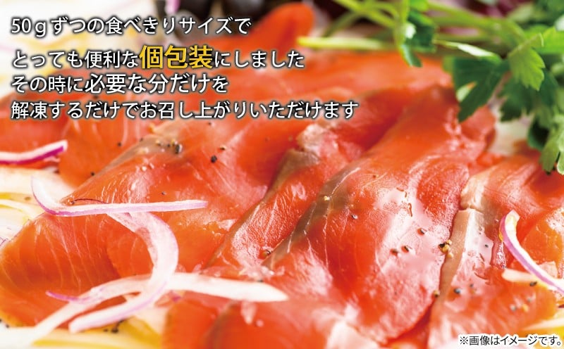 - 紅鮭 スモークサーモン 500g 50g × 10パック 使い切り サーモン 鮭 さけ 食べきり カット スライス 燻製 無添加 スモーク 冷凍 真空 個包装 真空パック 小分け 切り身 切身 オードブル おつまみ おかず サラダ ストック 手軽 簡単 冷凍食品 長期保存 お取り寄せ グルメ 魚 大容量 ギフト 贈り物 海の幸 ふるさと納税 ふるさと納税さけ 送料無料 千葉県 銚子市 松岡水産