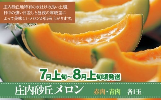- 【令和8年産先行予約】【3回お届け】鶴岡産果物定期便 庄内砂丘メロン(赤肉・青肉各1玉)& 桃 約2kg & ラ・フランス 約3kg 泉屋商店