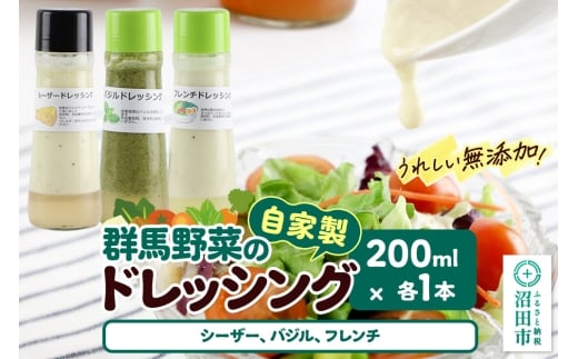 自家製・群馬産野菜で手作りドレッシング(シーザー、バジル、フレンチ)200ml×各1本 泙川食品
