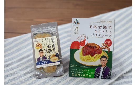 ロバート馬場ちゃん考案レシピ 柄猛者海老の「パスタソース」1箱「塩麹づけ」1袋|えび エビ パスタ 塩こうじ 鳥取 岩美 もさえび【53028】