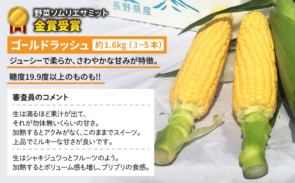- 【先行受付2026年発送】野菜ソムリエサミット金賞受賞!東御市産とうもろこし(ピュアホワイト・ゴールドラッシュ)約3.2kg(7~10本)|スイートコーン ※2026年7月上旬~9月上旬に順次発送予定※着日指定不可