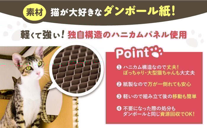 にゃんぐるタワー / キャットタワー 紙製 ハニカムパネル 猫 猫用品 インテリア 家具 ペット用品 爪とぎ 工具不使用 組み立て簡単 おしゃれなデザイン ねこ ネコ 東濃コアー 室内遊具 頑丈 軽量 お取り寄せ 贈答 ギフト 岐阜県 / 恵那市 / 東濃コアー [AUEZ001]