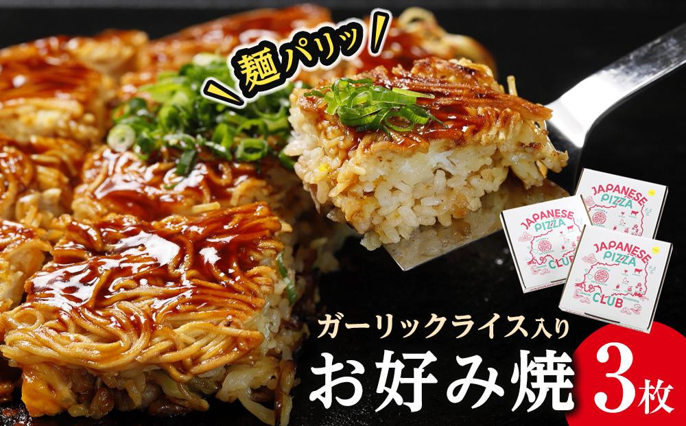 麺パリッ!広島 お好み焼と新定番!ガーリックライス入りお好み焼セット【3枚入り】