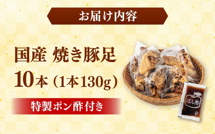 - 特製ポン酢付き!ぷるぷる国産焼き豚足 10本セット(130g×10p)▼豚足 とんそく 国産 セット 小分け 常温 豚 桂川町/株式会社MEAT PLUS [ADAQ142]