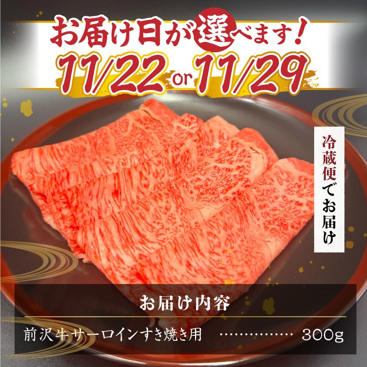 【ふるさとチョイス大感謝祭イベント限定】 前沢牛 サーロイン すき焼き 300g 数量限定 期間限定 【冷蔵発送】【11月22日または11月29日お届け】 離島配送不可 [U0229-1][U0229-2]
