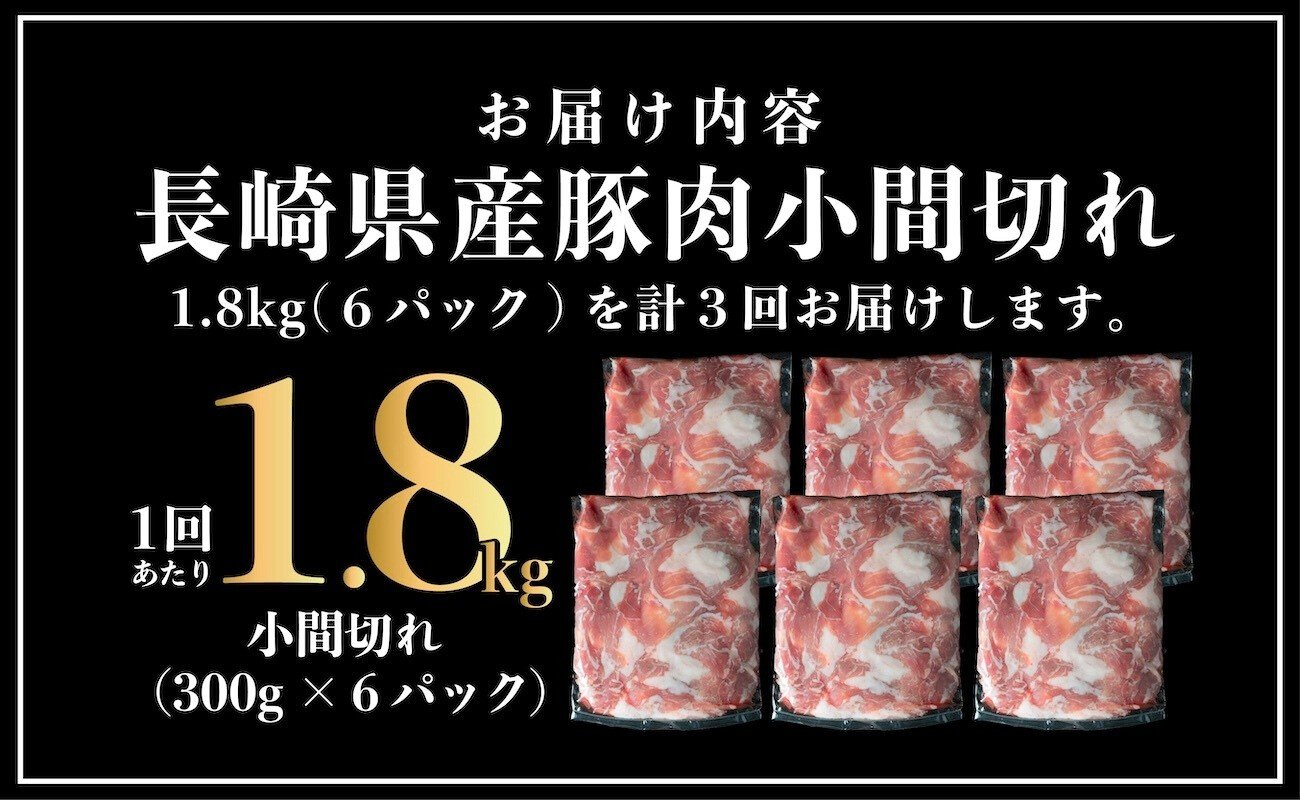 - 【3回定期便】長崎県産 豚肉こま切れ 1.8kg (300g×6) 総計5.4kg 定期便 小分け 冷凍 豚肉 こま切れ 小間切れ 細切れ 切り落とし ぶたにく 国産豚 定期便 B570