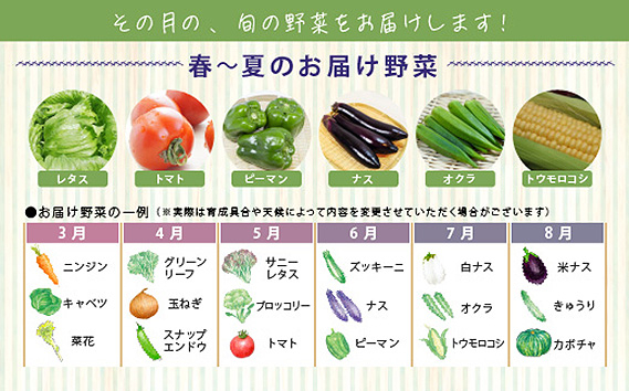 【年5回コース定期便】合志の旬のお野菜10〜12品目【一般社団法人クラッシーノこうし】 野菜 旬 季節 詰合せ 国産 合志市 おまかせ 詰め合わせ 産地 直送 春野菜 夏野菜 秋野菜 冷蔵 根菜 果物 葉物 産地直送 合志 熊本県 熊本 くまもと セット お野菜 ほうれん草 小松菜 ミニトマト さといも さつまいも なす ピーマン しょうが 大根 レタス キャベツ [AYAB020]