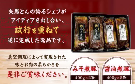 矢場とん 煮豚セット みそ煮800g・醤油煮800g レンジで簡単! | 煮豚 味噌煮 醤油煮 みそ煮 豚肉 加工食品 惣菜 ご当地グルメ 名古屋めし 送料無料 老舗 名店 人気 おすすめ レンジ調理 簡単調理