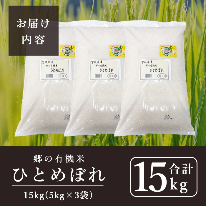 <令和7年産>郷の有機米 ひとめぼれ 15kg お米 おこめ 米 コメ 白米 ご飯 ごはん おにぎり お弁当 有機質肥料 特別栽培米 【JA新みやぎ】ta507