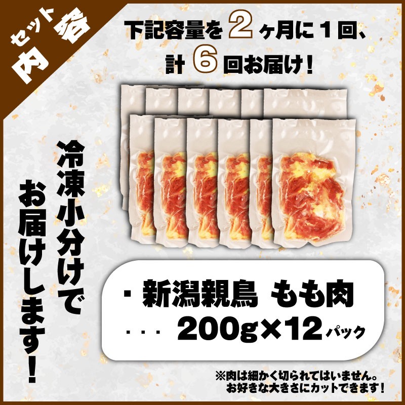- 隔月6回 定期便 計14.4kg 親鶏 もも肉 隔月定期便 2.4kg×6回 200g×72パック 鶏肉 鶏 チキン タンパク もも 肉 とり にく お家ごはん 国産 県産 親鳥 鳥肉 精肉 父の日 ブランド鶏 鍋 汁物 郷土食 新潟親鶏 冷凍 小分け 親どり 親鳥 新潟産 新発田産 マルコ岩村 新潟県 新発田市 maruco6000