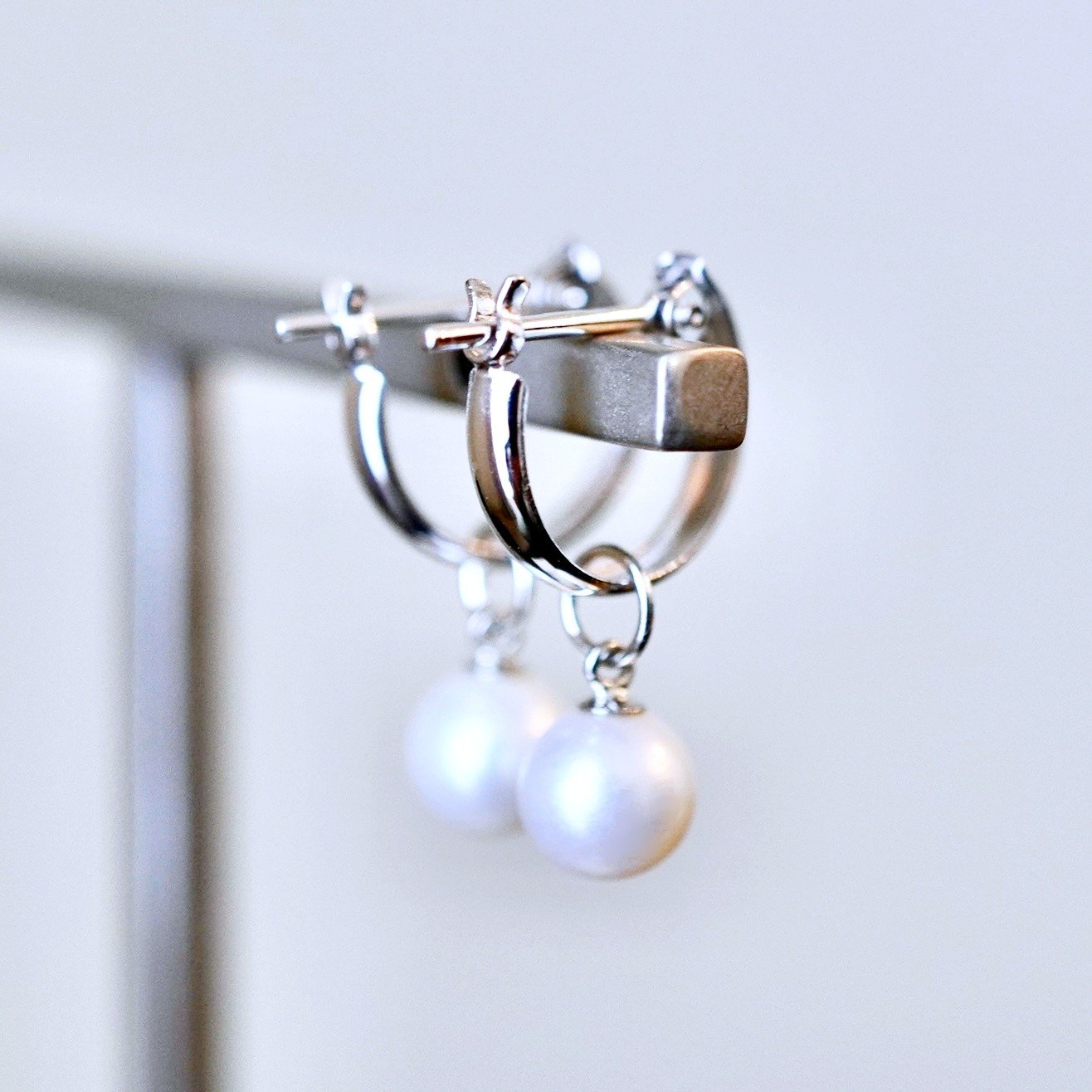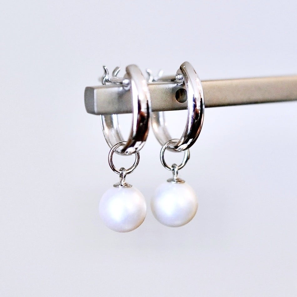 - Pt900 プラチナ 2WAY ピアス 地金 真珠 パール フープピアス (直径10mm) 保証書付 SMK-5249 SWAD098-ppt
