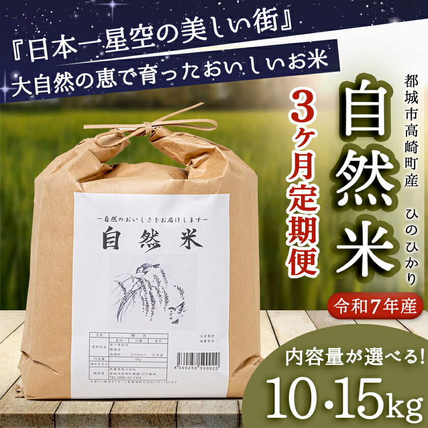 【ふるさと納税】【内容量が選べる!】【3ヶ月定期便】都城市高崎町産ひのひかり「自然米」 - 宮崎県都城市産ヒノヒカリ 白米/お米 産地直送 容量が選べる 10kg/15kg 定期便 3ヶ月連続お届け 送料無料 SKUT-6801【宮崎県都城市は2年連続ふるさと納税日本一!】