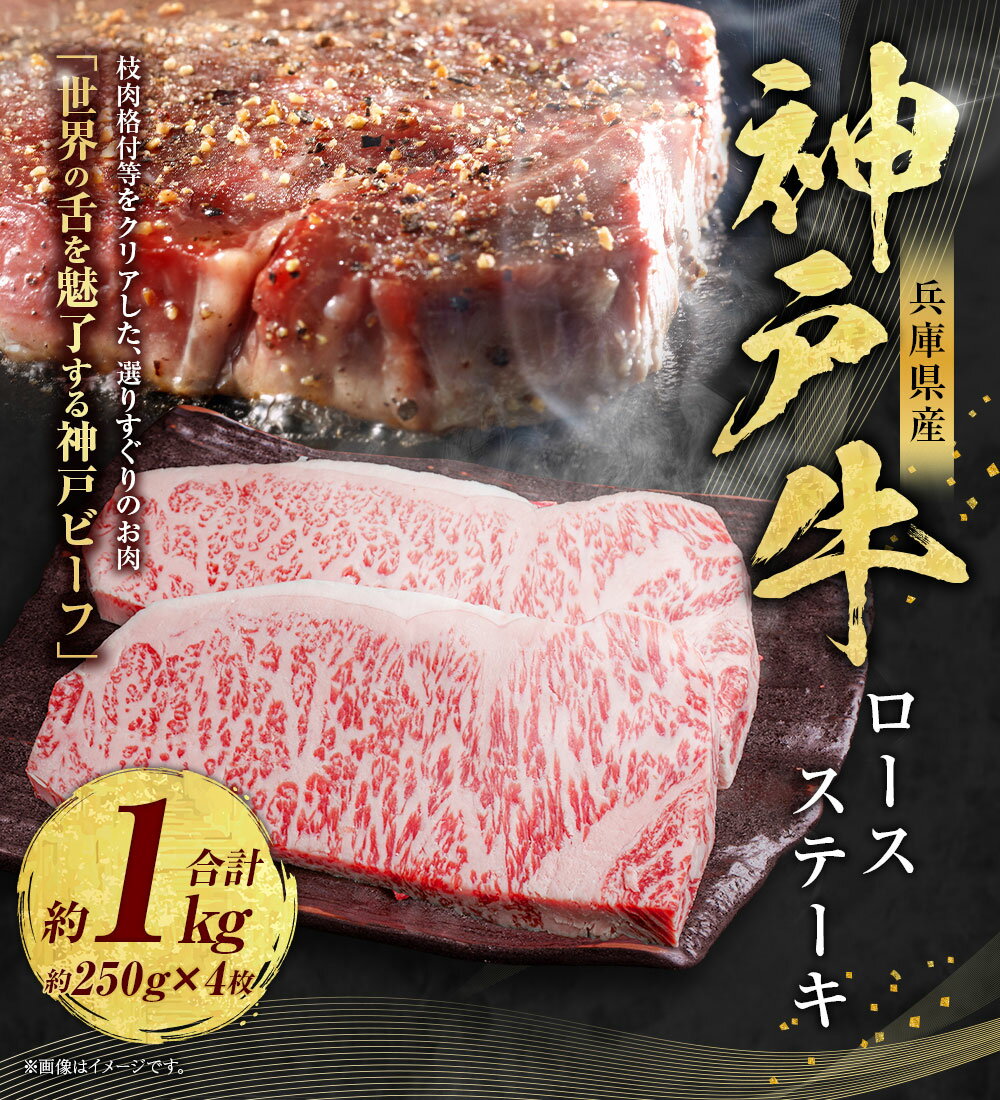 - 【ふるさと納税】神戸牛 ロースステーキ 約250g×4枚 計約1kg AKST10 牛肉 肉 にく ロース ステーキ ビーフ 牛 赤身 霜降り 神戸ビーフ 兵庫県 赤穂市 送料無料
