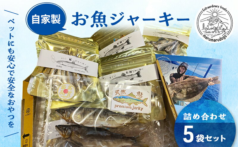 【ふるさと納税】ペットフード 自家製 お魚 ジャーキー 詰め合わせ 5袋セット MARUMARUDOGS 金目鯛御頭 真鰯 ワカサギ メジナ 虹鱒 うなぎの頭 鰺 サバ 花鯛 キハダマグロ ムツ