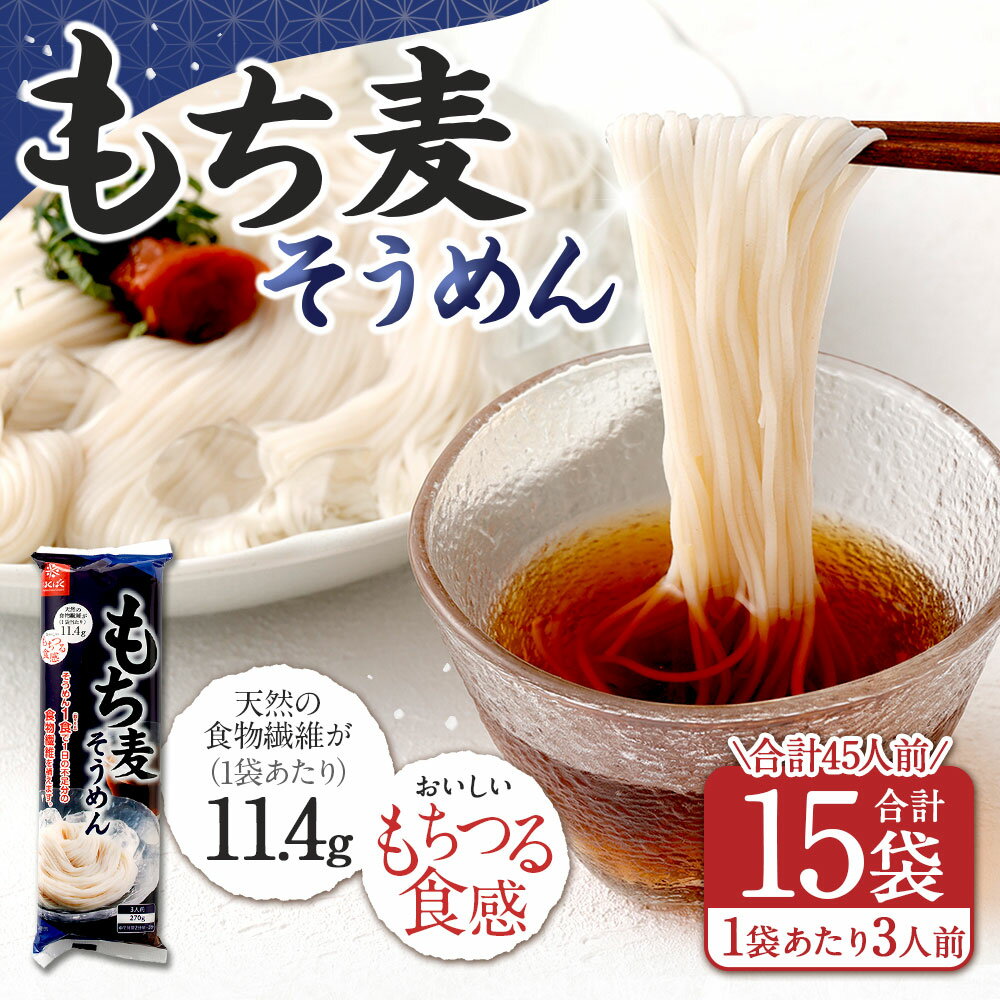 【ふるさと納税】もち麦そうめん 計4.05kg(270g×15袋) 素麵 ソーメン そうめん 麵類 乾麵 もち麦 食物繊維 惣菜 国産 山梨県 中央市 送料無料