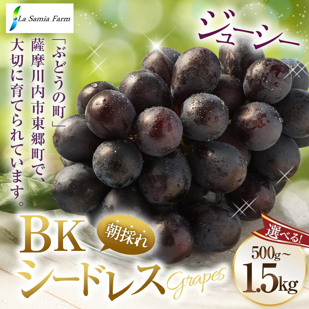 【ふるさと納税】 【選べる・容量】 【先行予約】 朝採れ BKシードレス (種なし) 500g(1房) 1kg(2房) 1.5kg(3房)ぶどう 葡萄 ブドウ くだもの 果物 フルーツ 新鮮 朝どれ 鹿児島県 薩摩川内市 送料無料 【2026年8月上旬から9月中旬発送予定】 ZS-558