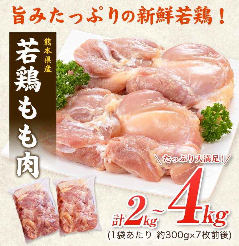 - 【ふるさと納税】大容量 鶏肉 発送時期が選べる 鶏もも 高レビュー! 鶏もも肉 4kg 熊本県産 若鶏もも肉 約2kg×2袋 《30日以内に出荷予定(土日祝除く)》 肉 鶏肉 若鶏 国産 真空 冷凍 冷凍庫 鳥 鳥肉 鳥もも 鳥もも肉 モモ モモ肉 鶏モモ肉 若鶏モモ